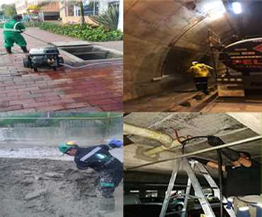 Hidrojet Servicio de Hidrojet Limpiador de tubería con agua a presión (3.600 PSI). Equipo portátil ideal para limpieza de tuberías comerciales, industriales y domiciliarias. Se opera través de una manguera flexible para tubería de 2” a 10”, destapa grasas, lodos y sedimentos. Limpieza en la red de aguas lluvias y aguas negras, trampas de grasa, cajas de paso, cárcamos, sumideros, etc... Ideal para colegios, restaurantes, conjuntos residenciales, hoteles, entre otros.